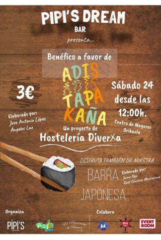 Según José Antonio López, organizador del evento y dueño de Pipi´s Dream, habrán tapas variadas que hará él junto a Ángeles Lax y vendrán los chefs Jaime Ngo y Raúl Sánchez Montesinos que estarán en una barra japonesa”. El postre corre a cargo de “Gustavo Serrano y también habrá gintonic dulce”.