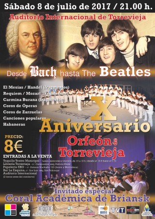 ‘Desde Bach hasta los Beatles’ es el Concierto Extraordinario con el que el Orfeón de Torrevieja celebrará por todo lo alto su décimo aniversario en el Auditorio Internacional de la localidad el próximo sábado día 8 de julio a las 21.00 horas.