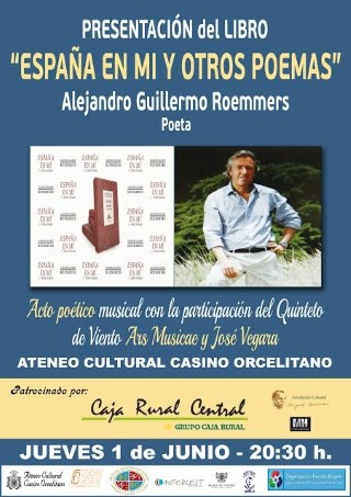El Casino Orcelitano Ateneo, acoge mañana jueves a las 2030 horas la presentación del poemario del argentino Alejandro Guillermo Roemmers.