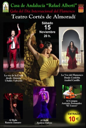 – Sábado 15 de noviembre, 20 horas: Gala flamenca con los artistas Ubaldo Valverde y Anabel Castillo en el Teatro Cortés, dentro del Día Internacional del Flamenco.