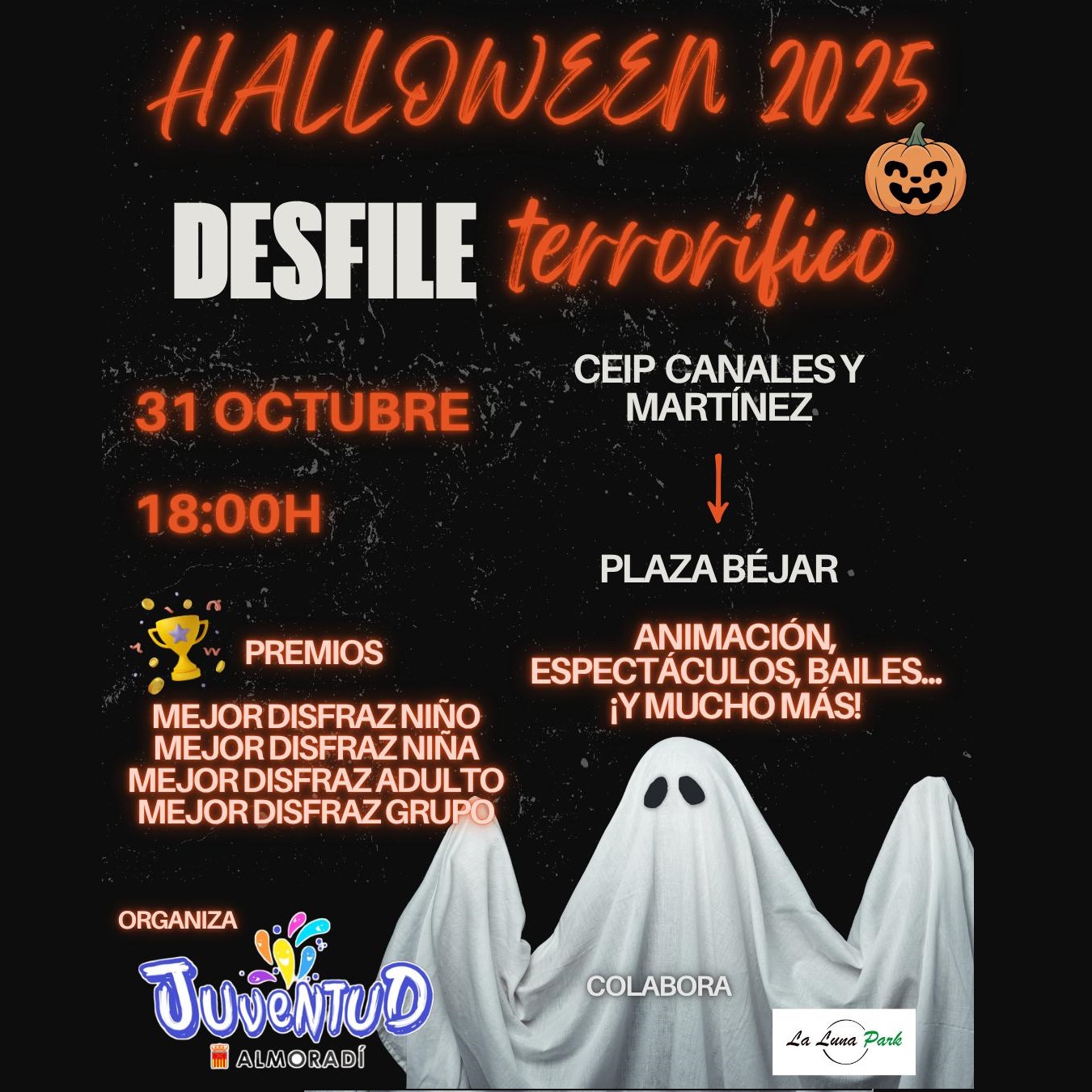 La Concejalía de Juventud del Ayuntamiento de Almoradí, con la colaboración de ‘Luna Park’, organiza el viernes 31 de octubre diferentes actos en la fiesta más terrorífica del año y de todos los tiempos, la de ‘Halloween’ 2025, con diferentes actividades para todas las edades.