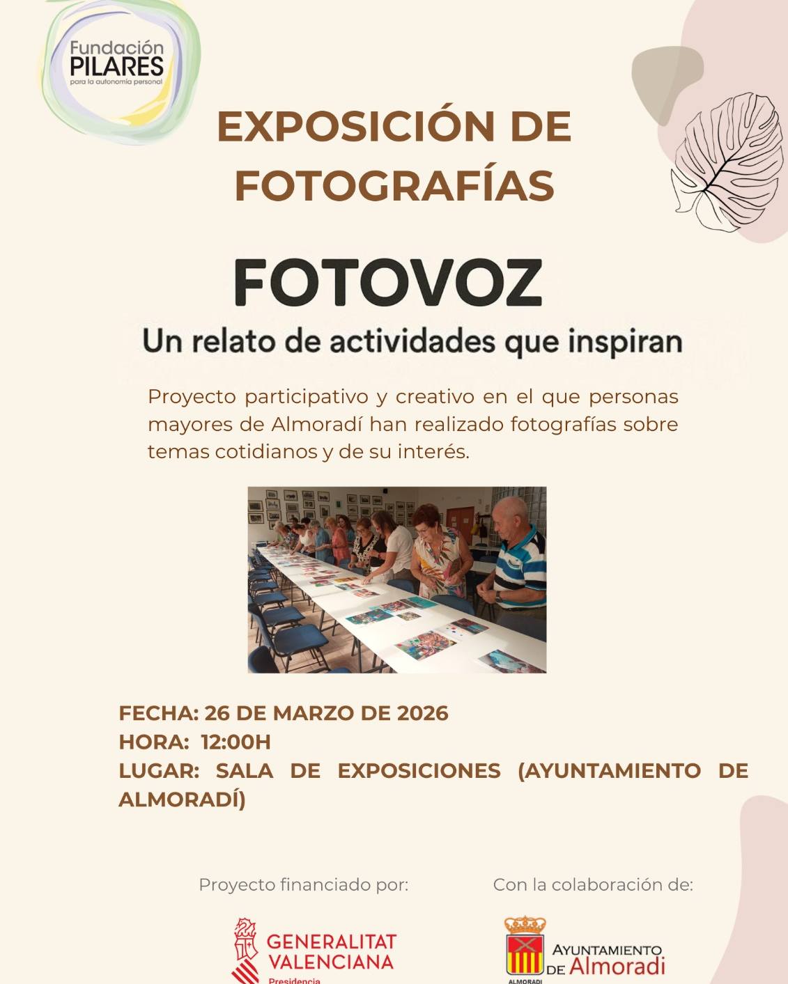 Almoradí, evento: Exposición de fotografías ‘Fotovoz, un relato de actividades que inspiran’, organizada por la Fundación Pilares y el Ayuntamiento