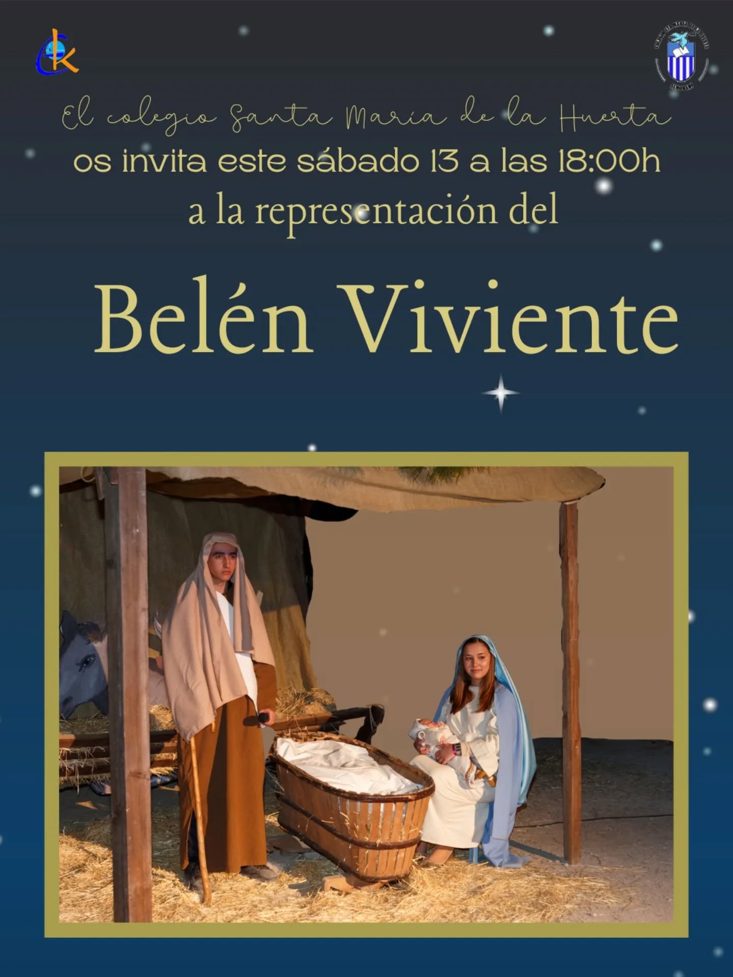 – Sábado 13 de diciembre, 18 horas: Representación del belén viviente en el colegio Santa María de la Huerta.