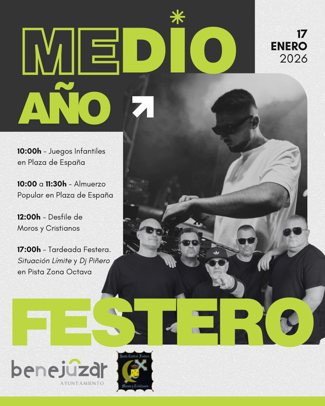 La Junta Central Festera de Moros y Cristianos de Benejúzar y el Ayuntamiento de la localidad benejucense organizan el sábado 17 de enero de 2026 por la mañana y por la tarde diferentes actos para todos los públicos y edades con una programación variada para celebrar una nueva edición del Medio Año Festero 2026 del municipio.