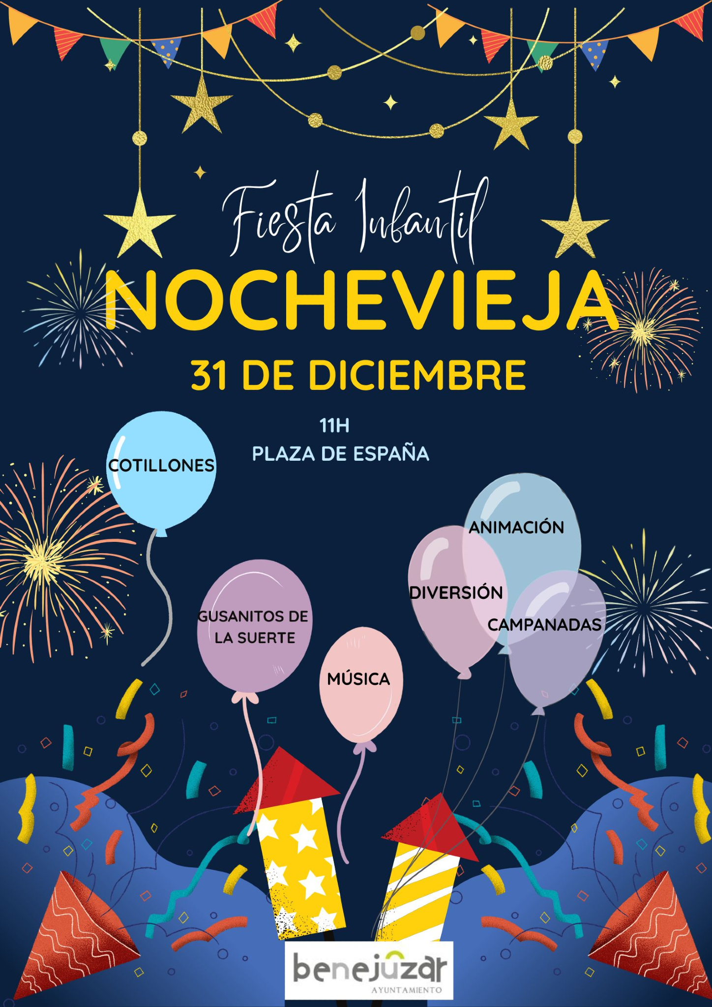 Benejúzar, evento: Fiesta de Nochevieja infantil con animación, gusanitos de la suerte, diversión, campanadas, música y cotillones, dentro de la programación de actividades de Navidad y Reyes organizada por el Ayuntamiento