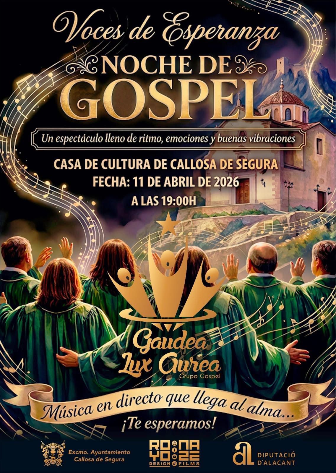 Callosa de Segura, evento cultural: Concierto de gospel ‘Voces de esperanza’, a cargo del coro ‘Gaudea Lux Áurea’, organizado por la Concejalía de Cultura