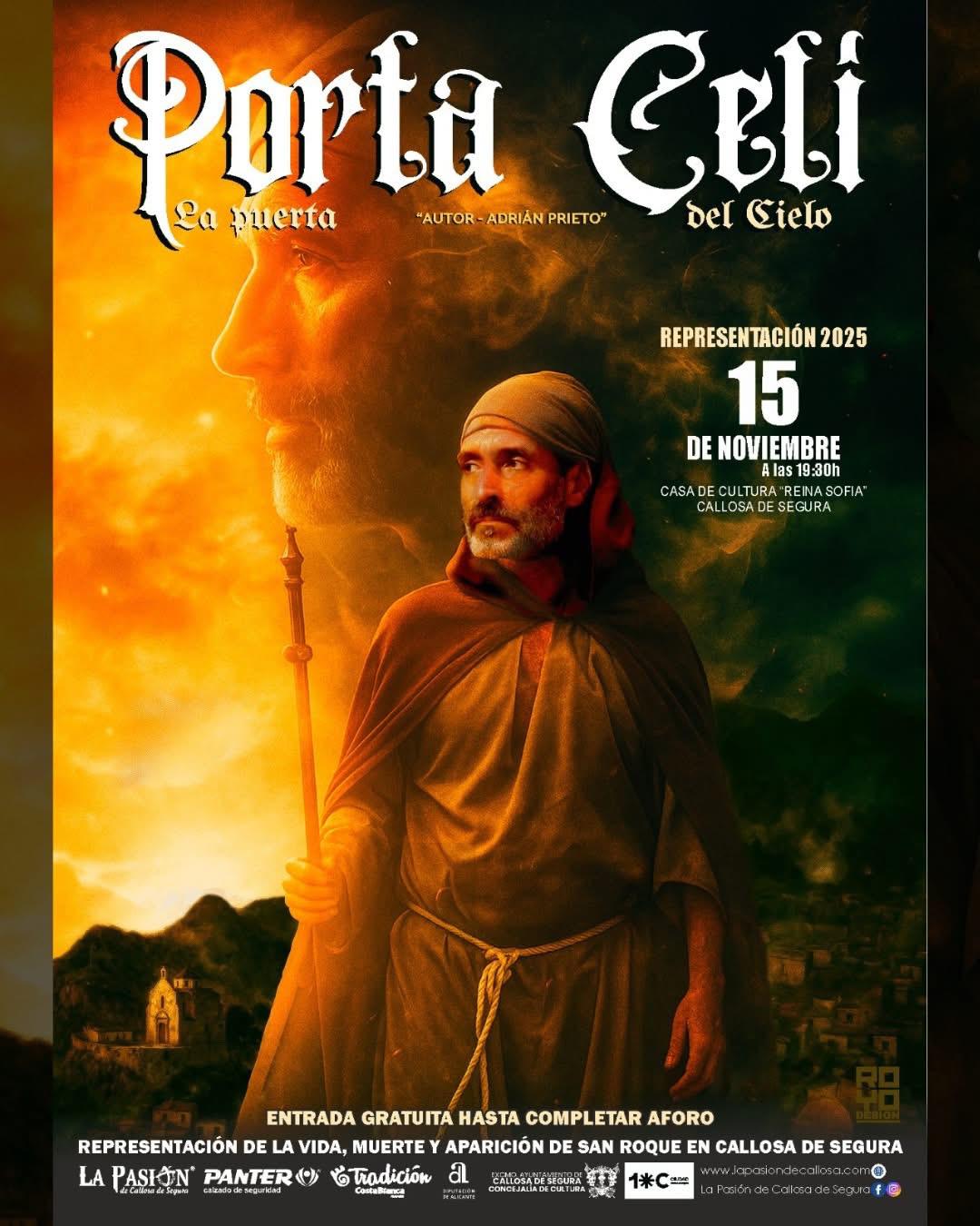El Patronato de la Pasión de Callosa de Segura pondrá en escena el sábado 15 de noviembre, a las 19,30 horas, la obra titulada ‘Porta Celi (La puerta de cielo)’, del autor callosino Adrián Prieto, en la Casa de Cultura ‘Reina Sofía’.