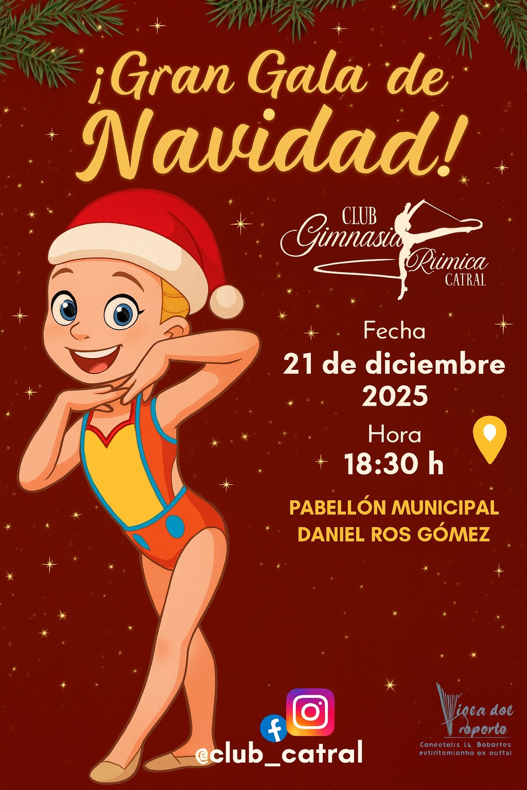 El Ayuntamiento de Catral organiza el domingo 21 de diciembre, a las 18,30 horas, la gala de Navidad a cargo del club de gimnasia rítmica en el Pabellón Municipal ‘Daniel Ros Gómez’ de la localidad.