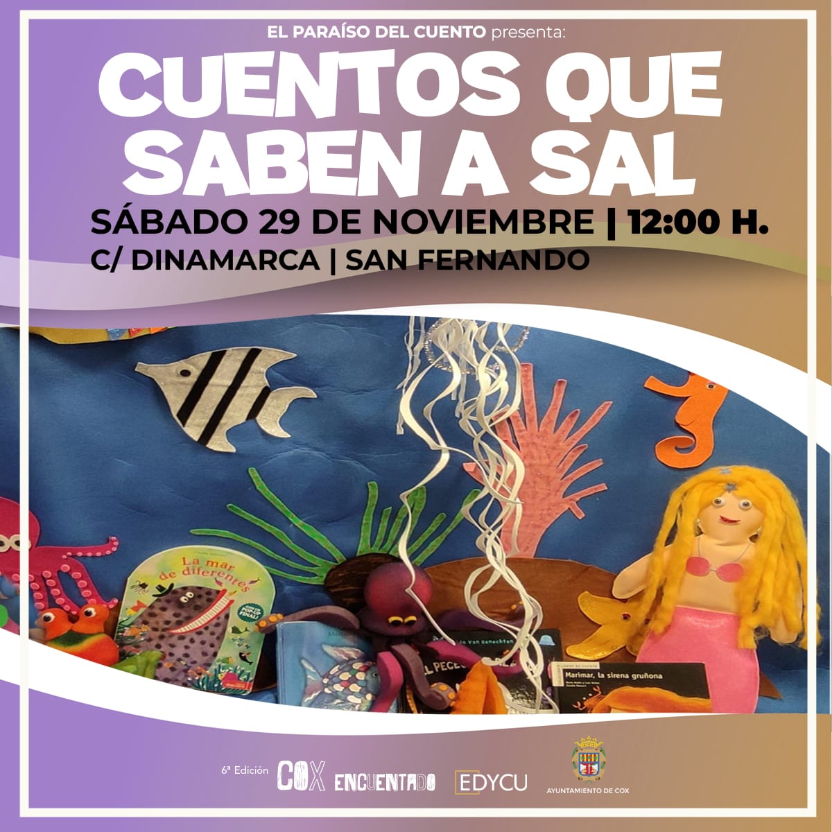 La Concejalía de Biblioteca del Ayuntamiento de Cox y EDYCU Gestión Cultural organizan entre el sábado 15 de marzo y el sábado 29 de noviembre la sexta edición del evento denominado ‘Cox Encuentado’ con una programación anual de 2025 que se ha consolidado como un referente en la narración oral en la provincia de Alicante.