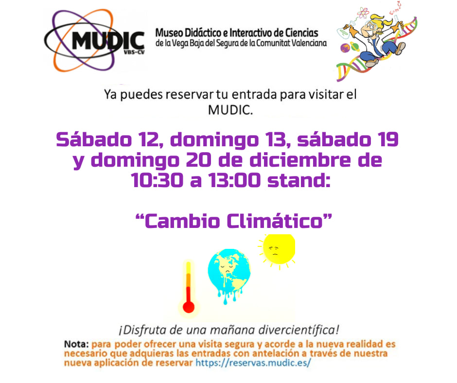 Desamparados de Orihuela, evento: Reservas para las visitas al ‘stand’ de cambio climático, organizado por el Museo de Ciencias MUDIC de la UMH