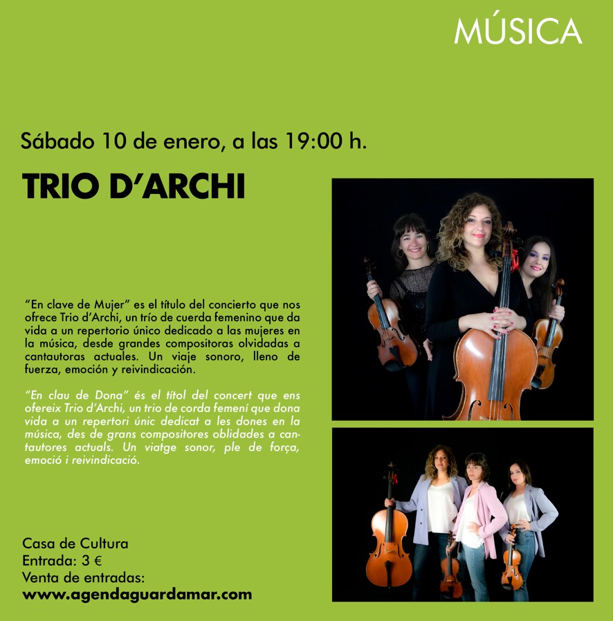 – 19 h.: Concierto con el título ‘En clave de mujer’, por el trío ‘D’archi’, en la Casa de Cultura.