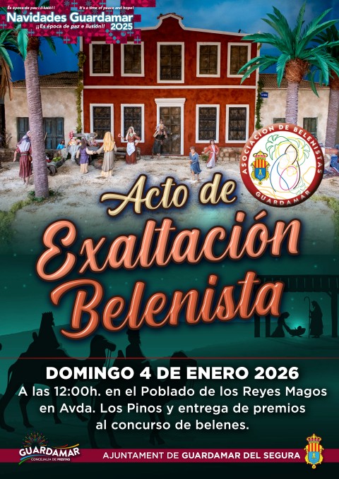 Guardamar del Segura, evento: Acto de exaltación belenista y entrega de premios del XII Concurso de Belenes, dentro del programa de actividades de las navidades 2025-2026 organizado por el Ayuntamiento