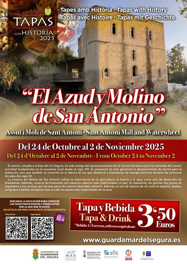 – Hasta el domingo 2 de noviembre, de 12 a 23 h.: XIV edición de la Ruta del Tapeo con el título ‘Tapas con historia 2025: El azud y molino de San Antonio’ durante todos los días en establecimientos hosteleros de la localidad. (El horario se adaptará a cada local participante).