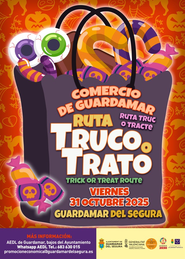 – 17,30 h.: Ruta denominada ‘Truco o trato’ en todos los comercios adheridos a la campaña, dentro de los actos de ‘Halloween’ organizados por el Ayuntamiento.