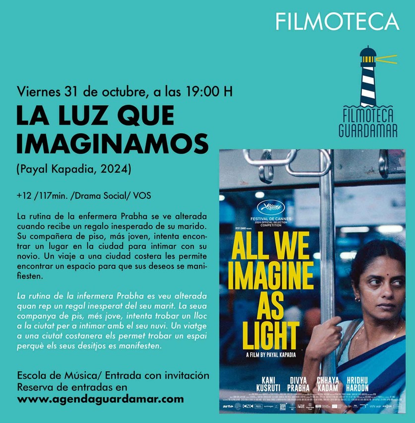 – 19 h.: Sesión de cine en la Escola de Música con la película india-francesa-holandesa-luxemburguesa-suiza-estadounidense titulada ‘La luz que imaginamos’ (2024, VOS), dirigida por Payal Kapadia e interpretada por Kani, Divya Prabha, Hridhu Haroon, Chhaya Kadam, Azees Nedumangad, Anand Sami, Lovleen Mishra, Shweta Prajapati, Tintumol Joseph, Ardra K.S. y Sisira Anil CK, dentro del ciclo ‘Filmoteca’. No recomendada para menores de 12 años.