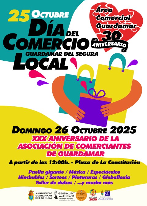 – 12 h.: Día del Comercio Local de Guardamar del Segura en la plaza de la Constitución, dentro del XXX aniversario de la Asociación de Comerciantes de Guardamar.
