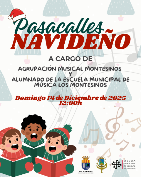 – 12 h.: Pasacalles navideño a cargo del alumnado de la escuela municipal de música y la Agrupación Musical Montesinos, dentro de la IV Feria Navideña de Asociaciones.