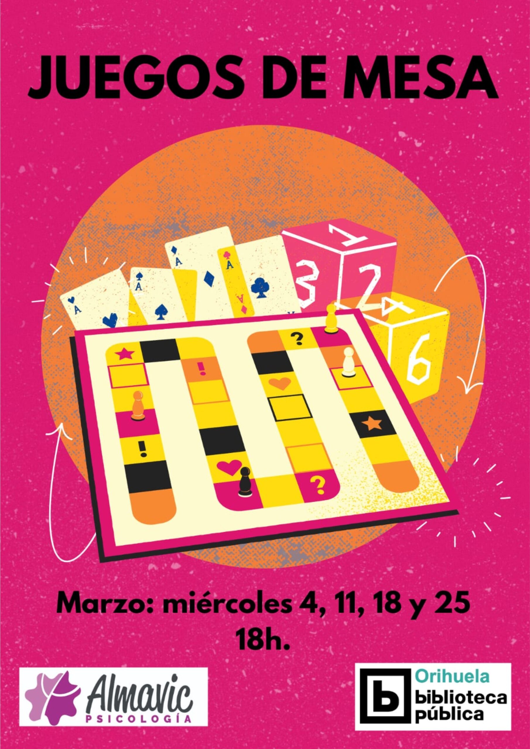 – 18 horas: Actividad de juegos de mesa para todas las edades por ‘Almavic Psicología’.