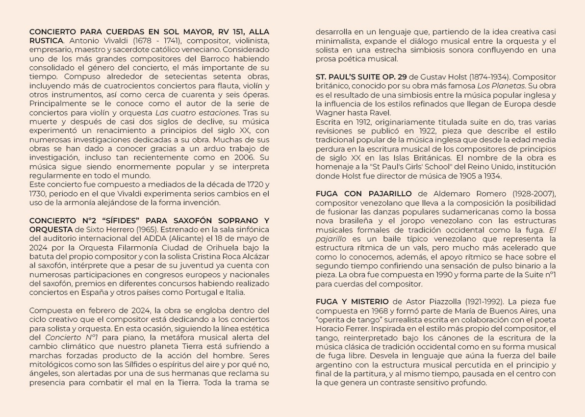 2.- ‘Concierto nº 2 ‘Sífides’ para saxofón soprano y orquesta’, de Sixto Herrero, con la saxofonista Cristina Roca Alcázar.