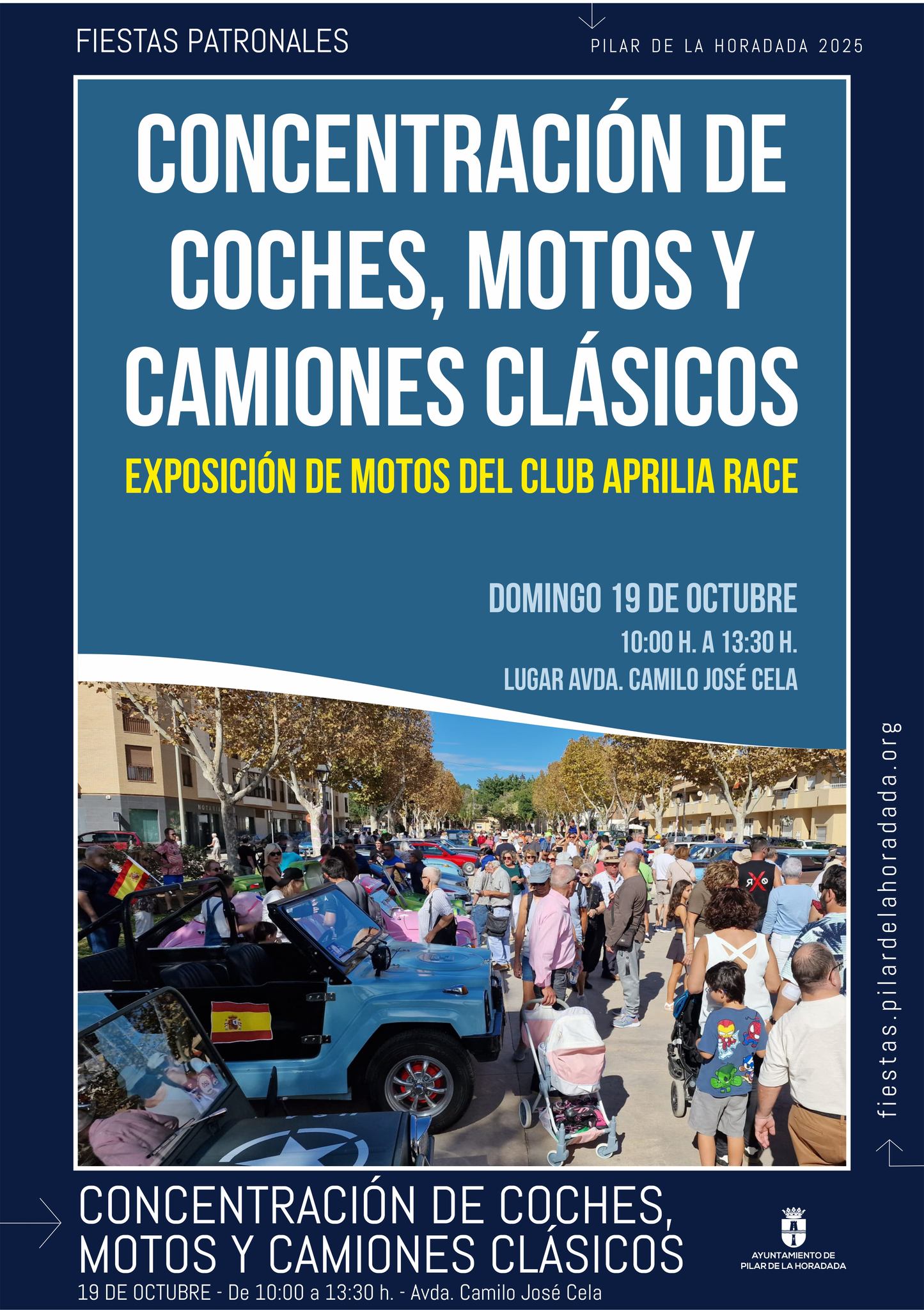 Pilar de la Horadada, evento: Concentración de coches, motos y camiones clásicos con exposición de motos del club ‘Aprilia Race’ y recorrido, dentro de los actos de las fiestas patronales de la Virgen del Pilar organizados por el Ayuntamiento