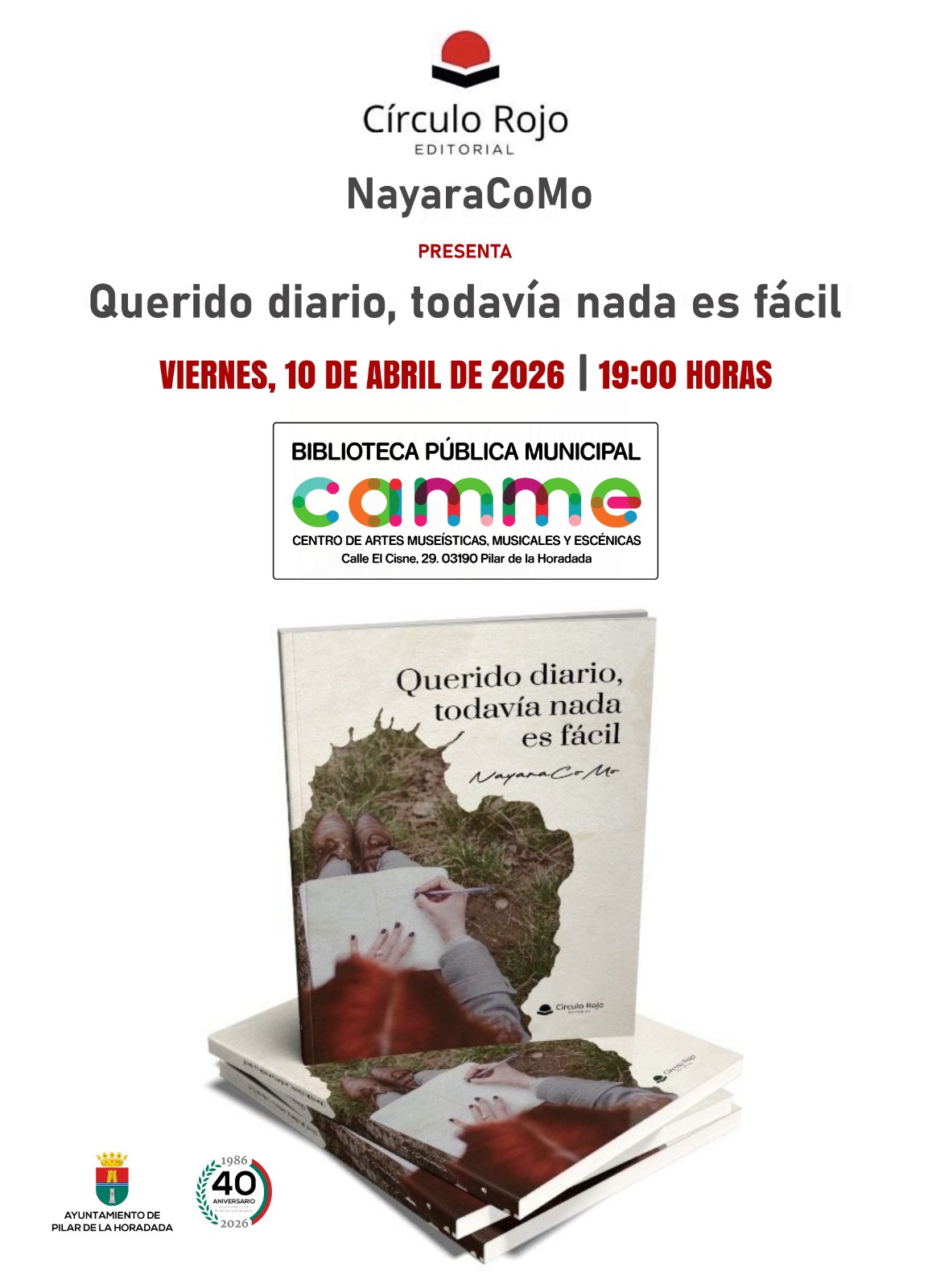 – Viernes 10 de abril, 19 horas: Presentación del libro titulado ‘Querido diario, todavía nada es fácil’, a cargo de su autora, Nayara CoMo, en la biblioteca municipal del CAMME.