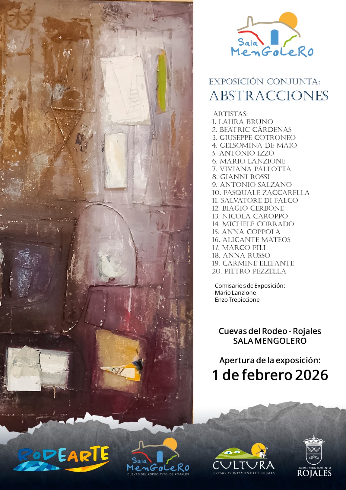 La exposición conjunta de una veintena de artistas con el título ‘Abstracciones’ se podrá visitar de lunes a viernes, de 9 a 15 horas, en la sala Mengolero de las Cuevas del Rodeo de Rojales.