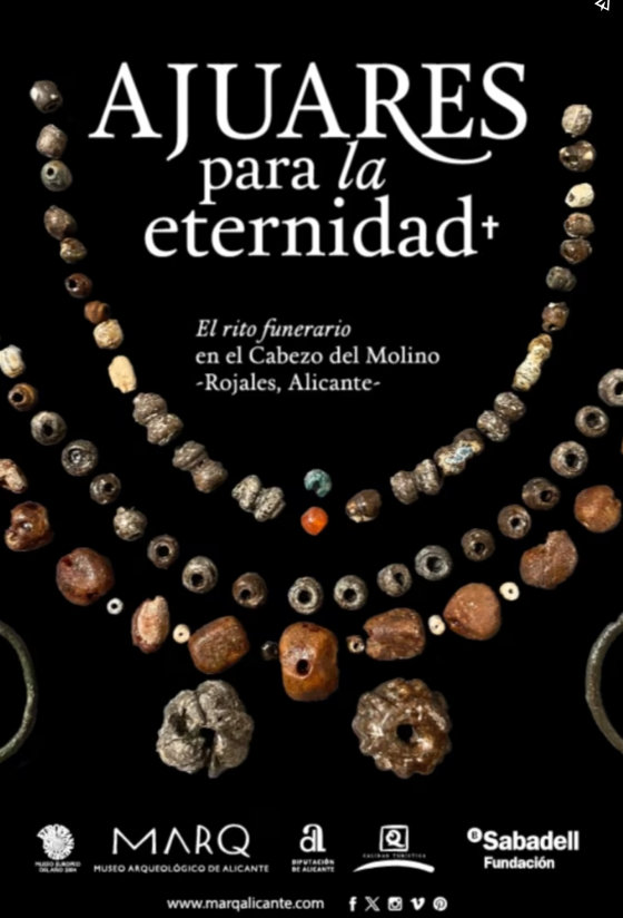 Rojales, evento: Exposición permanente del MARQ 'Ajuares para la eternidad. El rito funerario en el Cabezo del Molino' con cuatro conjuntos de joyas bizantinas de la necrópolis del yacimiento del Cabezo del Molino de Rojales, dentro de los actos del Museo Arqueológico y Paleontológico MunicipalA través de una novedosa museografía, paneles explicativos y un vídeo narrativo, ‘Ajuares para la eternidad’ muestra un particular momento de la historia. El Cabezo del Molino es uno de los primeros yacimientos de la provincia en el que se ha podido constatar la presencia de población de época bizantina (siglos VI-VII d.C.), en este caso a través de una gran necrópolis que, además, es de las primeras manifestaciones en el territorio de comunidades cristinas en el mundo rural.