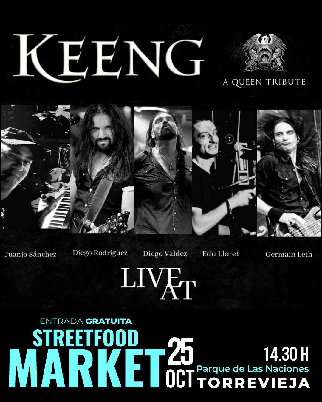 – 14,30 h.: Actuación de ‘Keeng’, un tributo al mítico grupo ‘Queen’, en el ‘Street food market’ del parque de las Naciones.