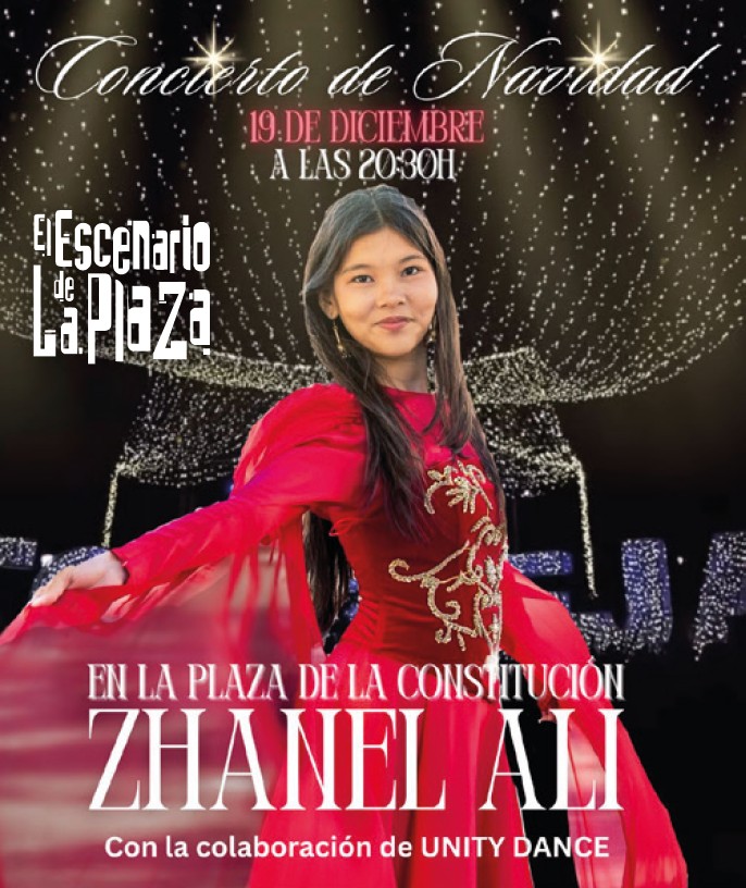 – 20,30 a 21 h.: Concierto de Navidad a cargo de la cantante Zhanel Ali, con la colaboración de ‘Unity dance’, en el escenario de la plaza de la Constitución.