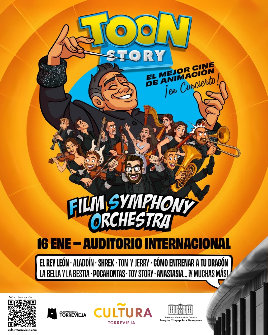 Torrevieja, evento cultural: Concierto de la ‘Film Symphony Orchestra’ ‘Toon story’ con temas de cine de animación, dentro de la programación cultural para el primer cuatrimestre de 2026 organizada por la Concejalía de Cultura