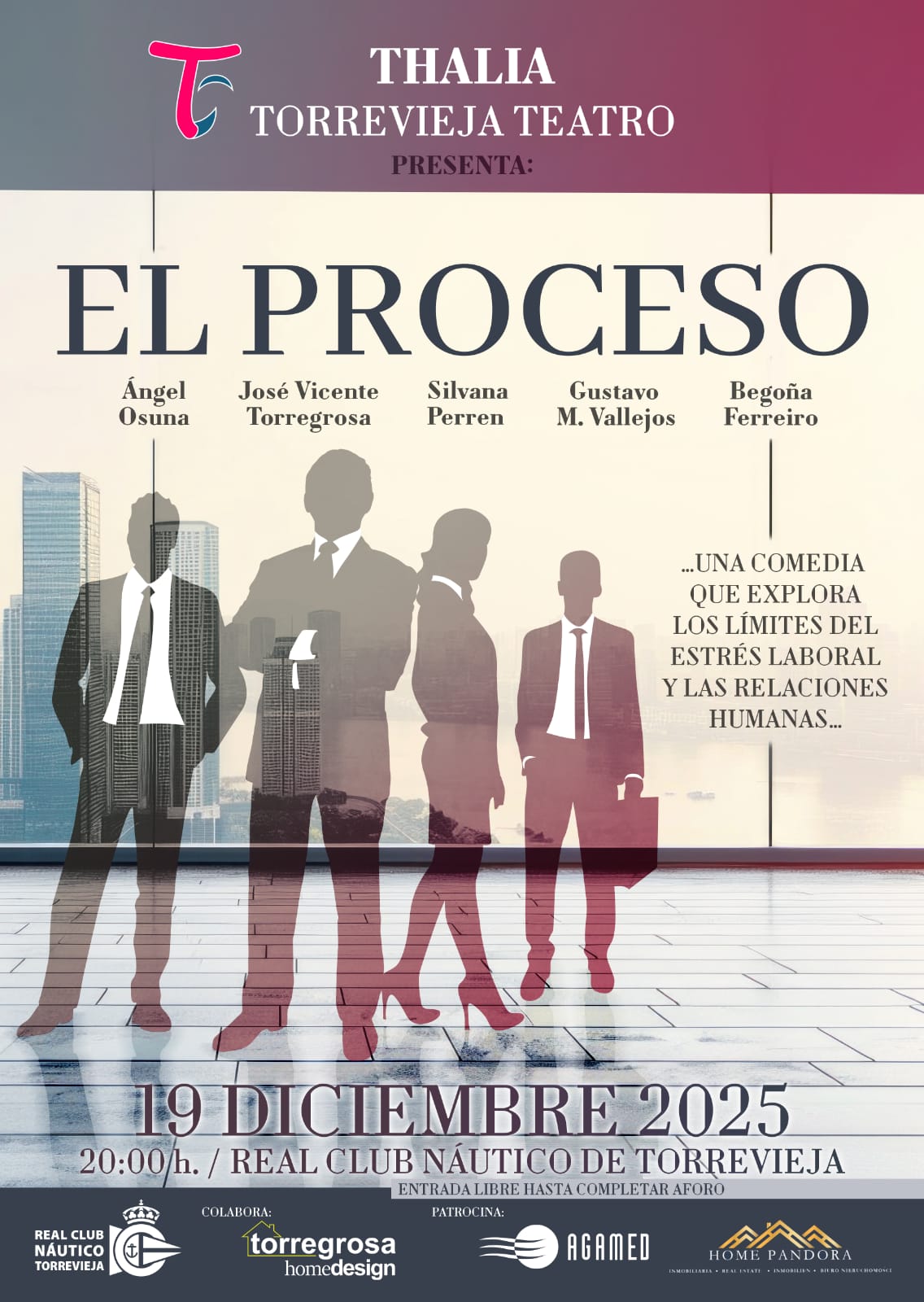 El Real Club Náutico de Torrevieja acogerá el viernes 19 de diciembre, a las 20 horas, la puesta en escena de la obra titulada ‘El proceso’, a cargo de la compañía ‘Thalia Torrevieja Teatro’.