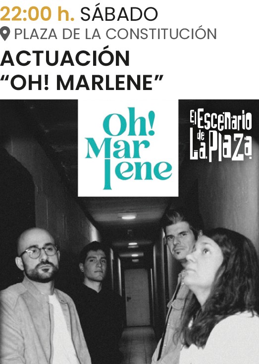 – 22 h.: Actuación del grupo ‘Oh! Marlene’ en el escenario de la plaza de la Constitución.