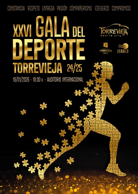 La Concejalía de Deportes del Ayuntamiento de Torrevieja organiza el domingo 18 de enero de 2026, a las 18 horas, la XXVI edición de la Gala del Deporte para rendir homenaje y poner en valor los logros deportivos más destacados de la temporada 2025 en el Auditorio Internacional.