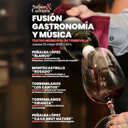 La programación cultural de Torrevieja para el fin de semana comienza este jueves, 22 de mayo, a las 20 horas en el Teatro Municipal de Torrevieja con una nueva edición de ‘Sabor & Cultura‘, una experiencia exclusiva que une gastronomía, vino y música en un formato íntimo y cuidadosamente curado. Organizado por Qtal Gourmet, este evento ya ha agotado nuevamente todas sus plazas, consolidándose como una de las propuestas más esperadas por los amantes del buen gusto.