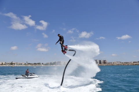 La edil y su compañera de gobierno, Carmen Morate, se han animado a probar el parasailing, una de las novedades de este año, que permite contemplar toda la costa de Torrevieja y su laguna rosada desde 150 metros de altura. Además del parasailing, en el litoral torrevejense se puede practicar el kayak, la vela, el kate surf o el flyboard. Paseos en barco hasta la Isla de Tabarca, clases de vela o de remo, alquiler de embarcaciones o practicar el wake en un cable esquí, son algunas propuestas más para disfrutar de este entorno.
